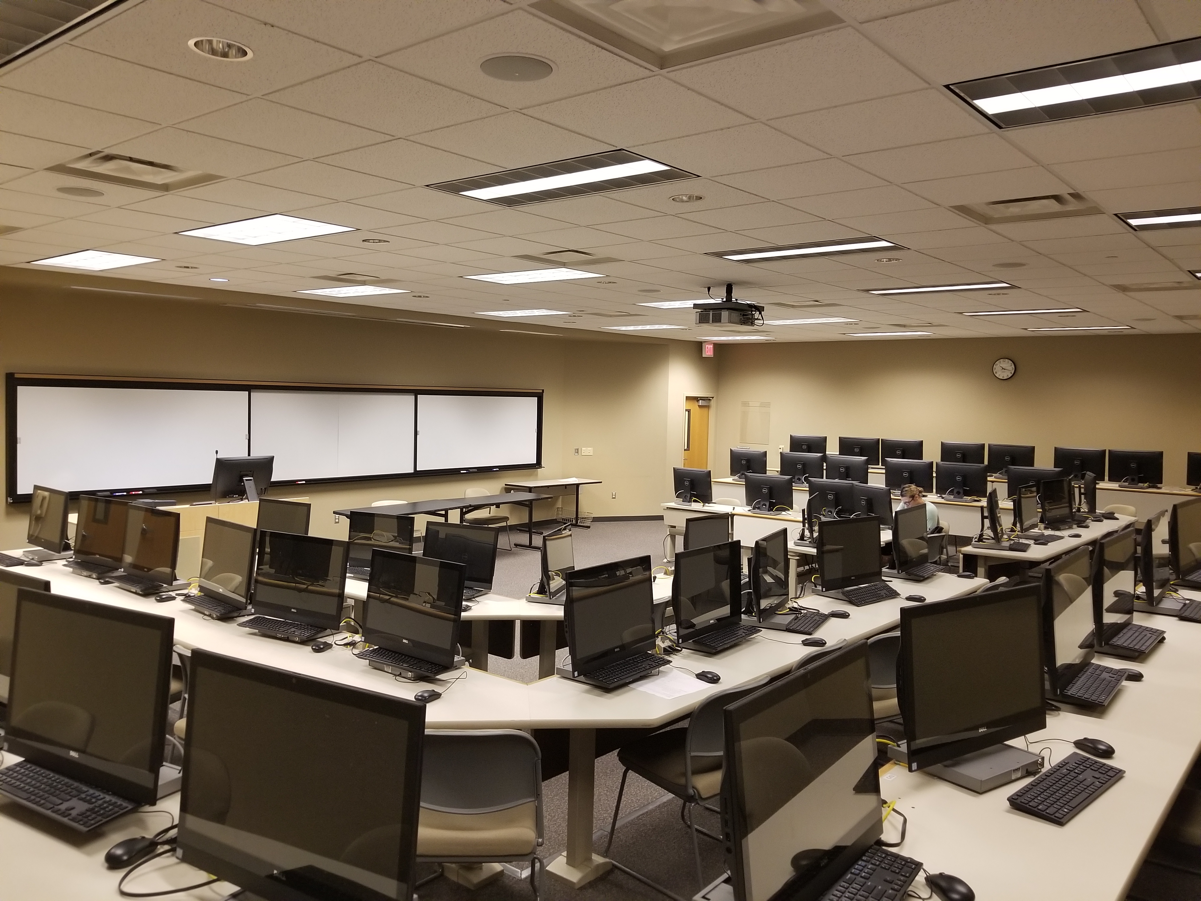 "I really enjoy teaching in CLCC170 for the courses where students need to access and work on their course material using the internet. Students love the big screen on the computers and the fact that it is touchscreen...My College Algebra courses are in this room since all the material for this course is online with videos to watch and explanation pages as well as practice exercises and tests using the Aleks course management system. Students bring headphones to use when they are watching videos...I use the projector to project the instructor's computer screen to show students what I need to and I use the document camera as well to show the use of the graphing calculator."